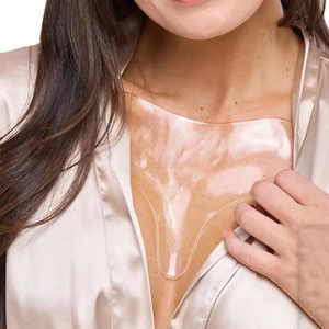 Das Silikongel-Patch wird einfach auf die Haut im Dekolletébereich aufgelegt. Es speichert Feuchtigkeit, verhindert ihr Verdunsten und fördert die Hautregeneration. Durch leichten Druck wird die Durchblutung angeregt, deine Kollagenproduktion gesteigert und dein Dekolleté auf natürliche Weise glatter, straffer und prall.