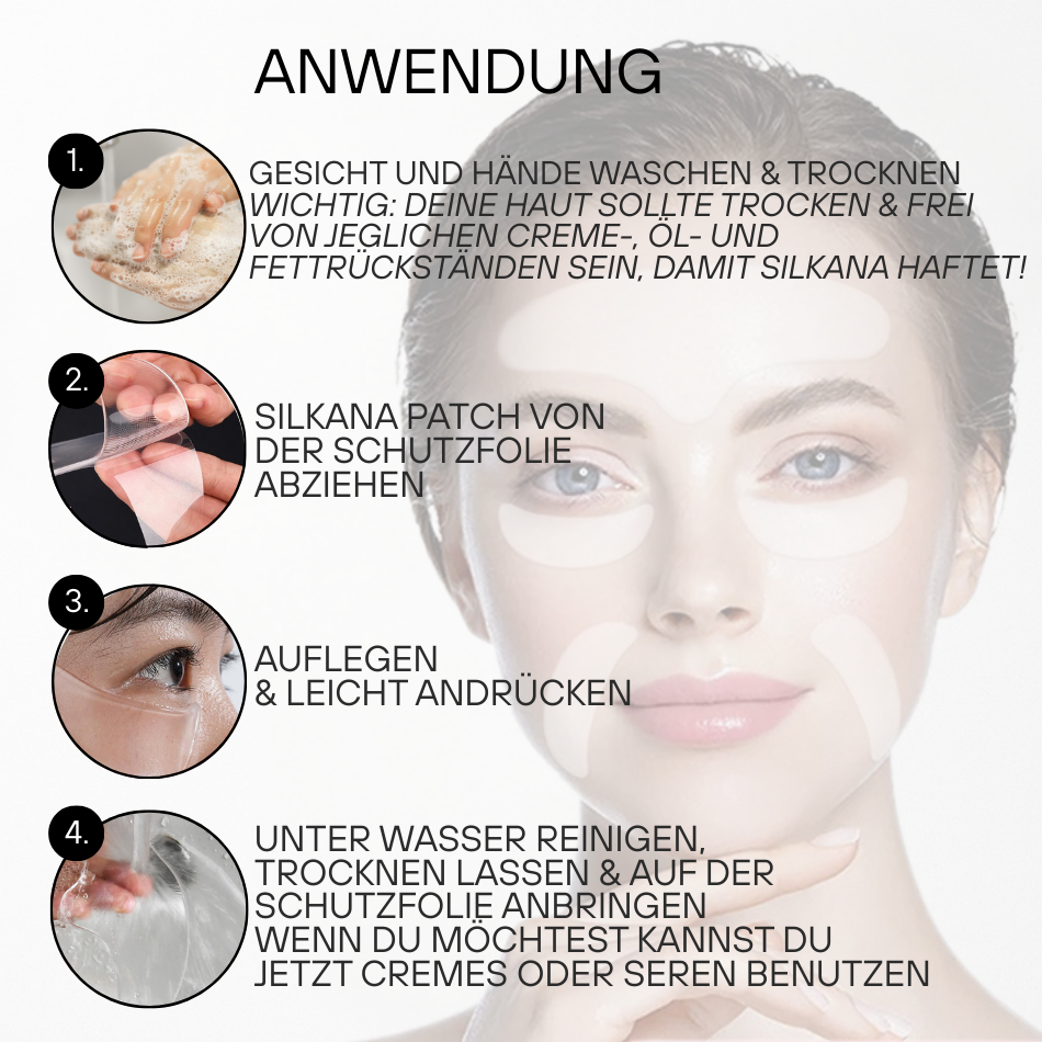 - Überprüfe regelmäßig den Zustand deiner Haut und achte auf Anzeichen von Unwohlsein. Bei Beschwerden entferne Silkana sofort.